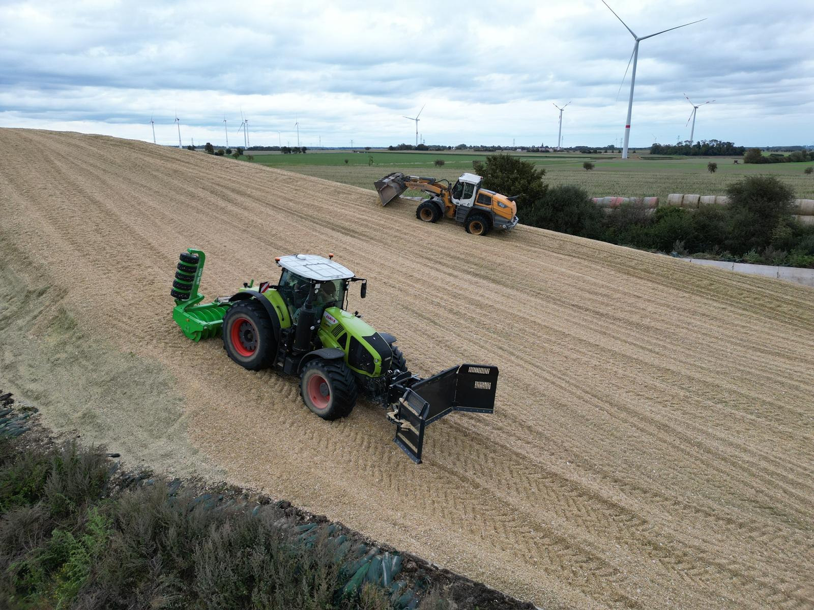 Wir erledigen Düngung, Maisaussaat und Ernte für bis zu 900 ha Vertragsanbaufläche in der Region und weitere Biogasanlagen.
